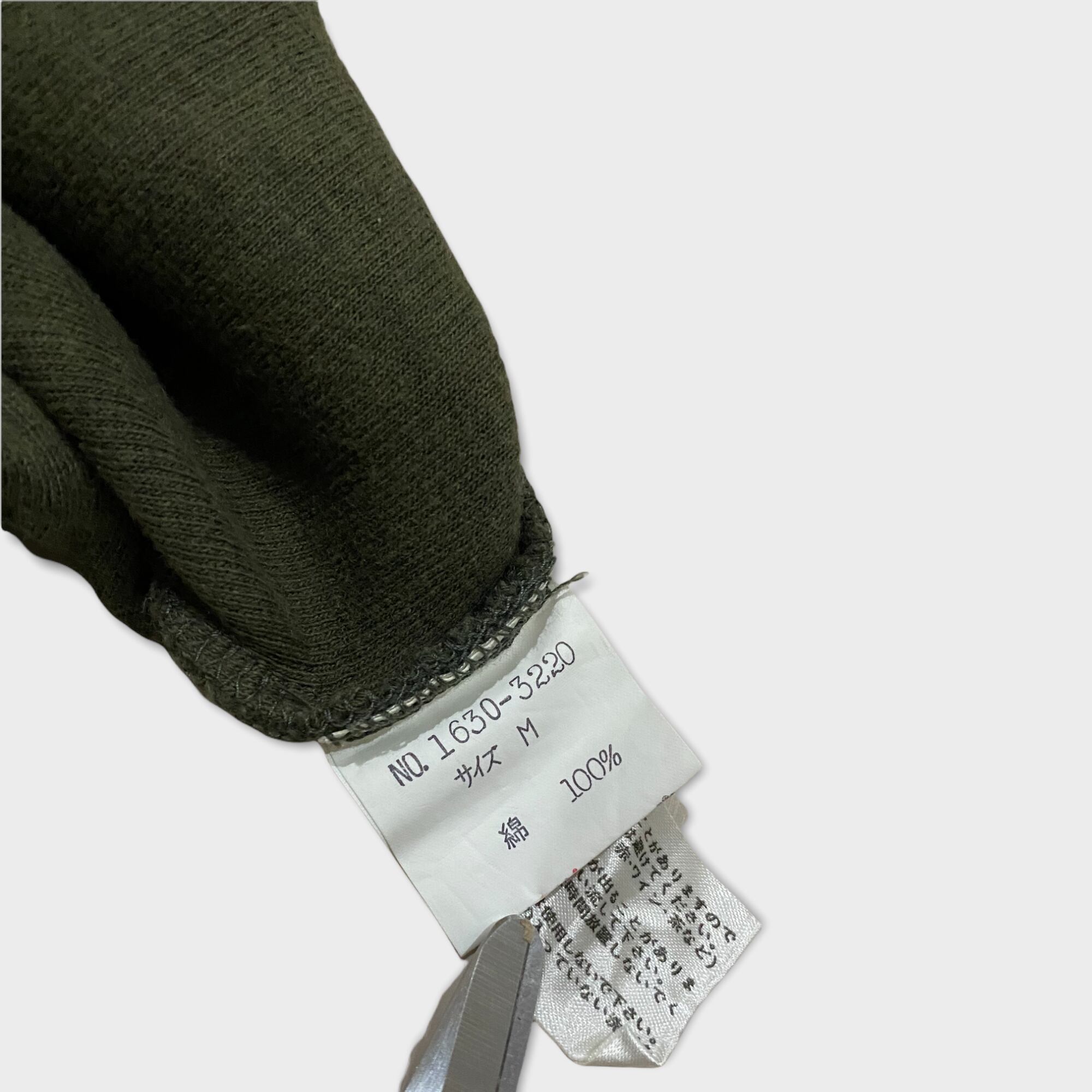 オリーブカラーのボディに、ロゴが刺繍で入った1枚。