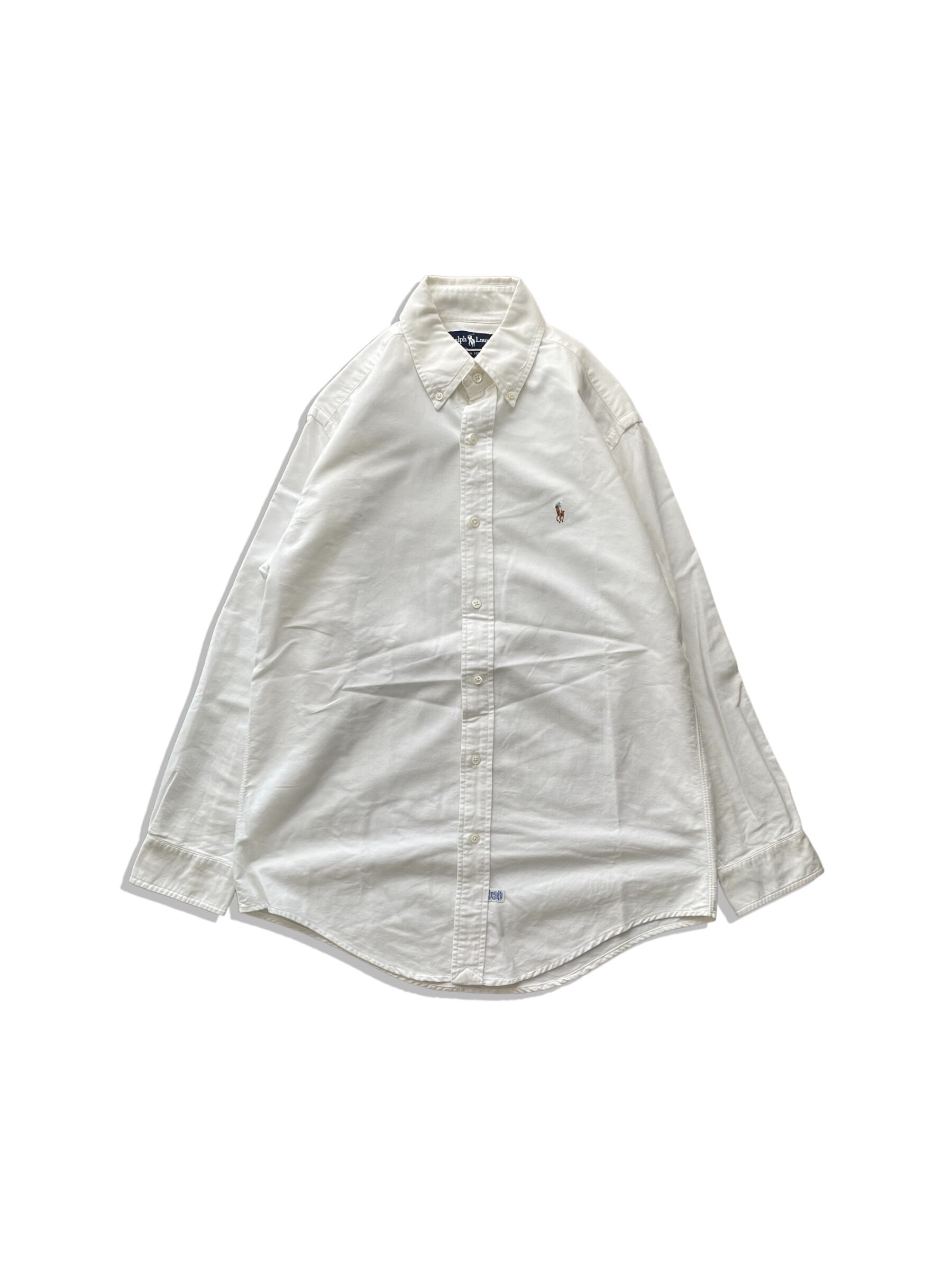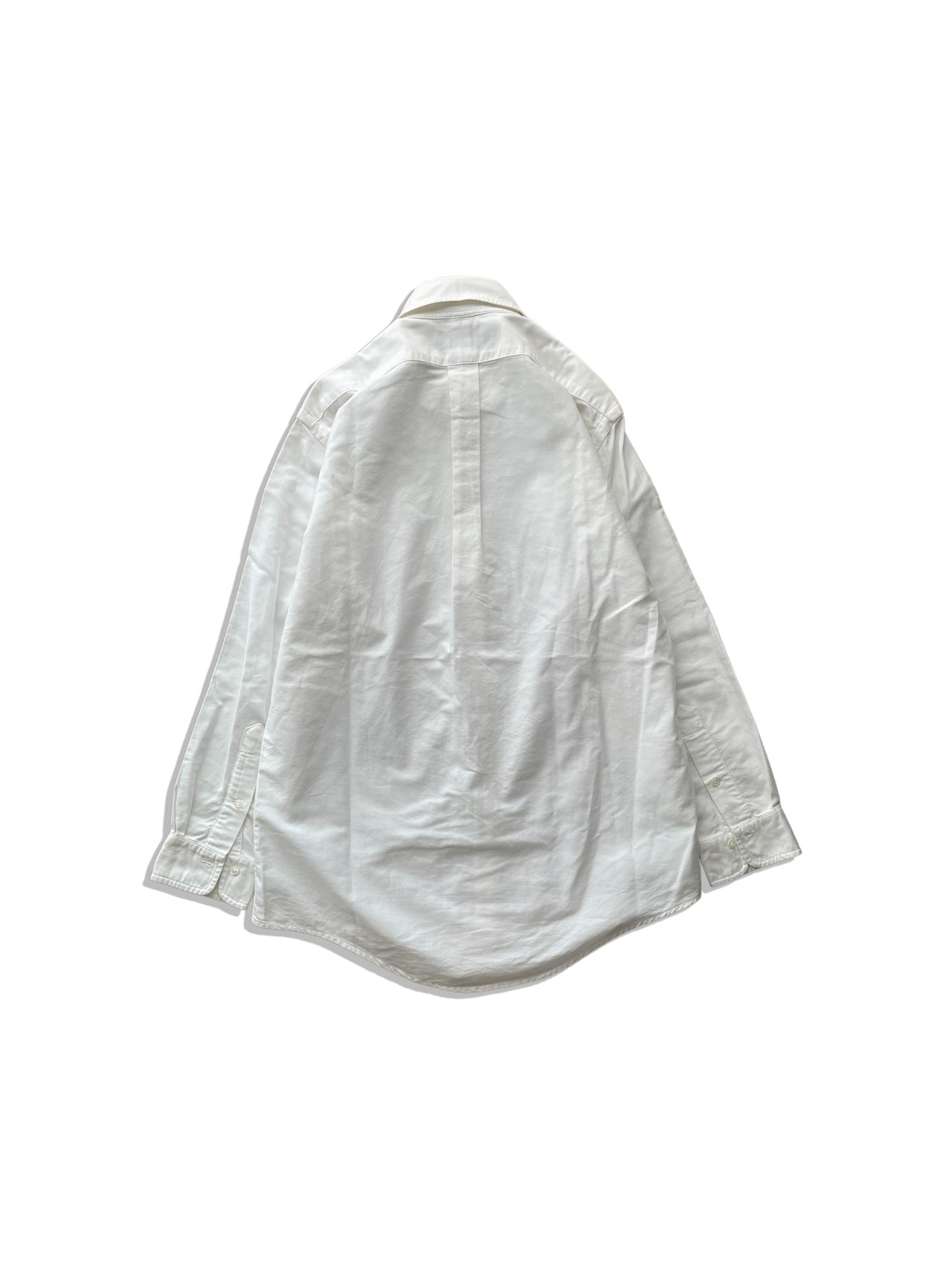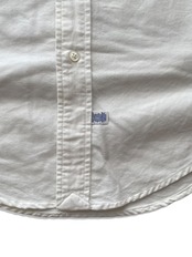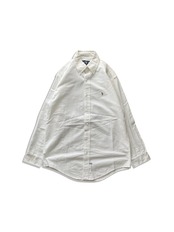 ベーシックなボタンダウンの白シャツ、海外規格。