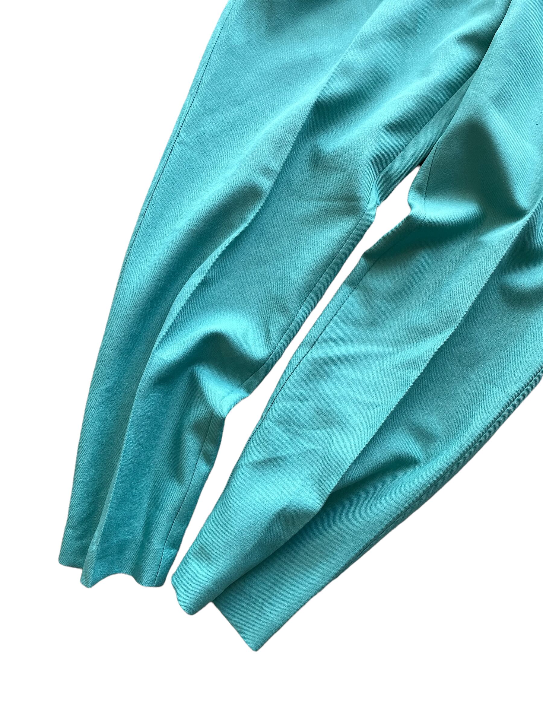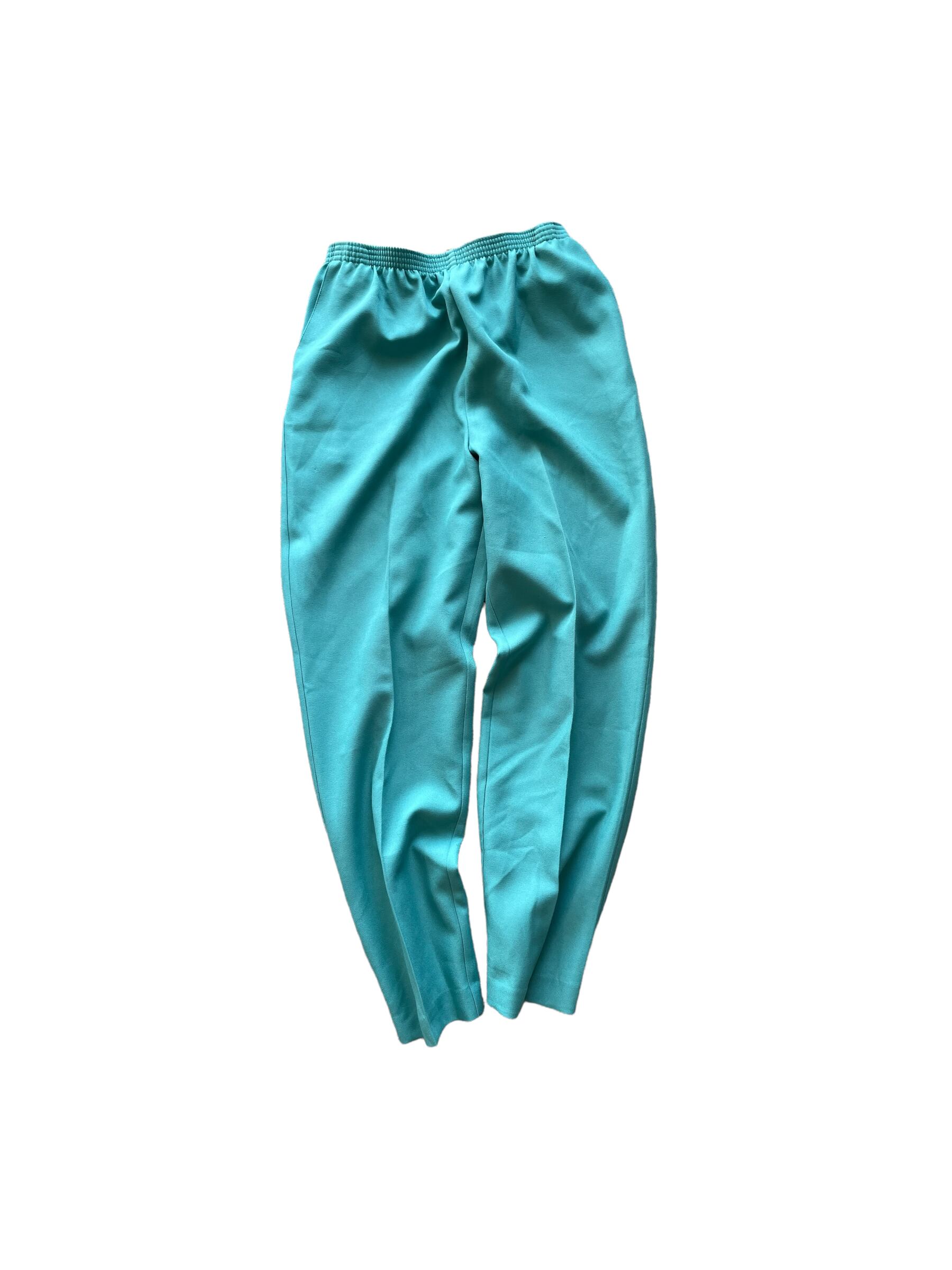 ターコイズカラー、センタープレスの入った綺麗めのパンツです。