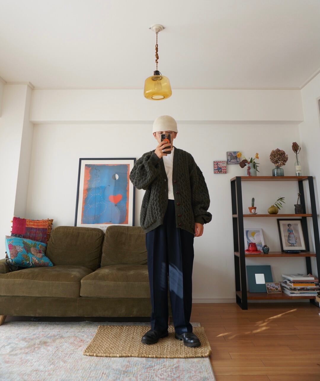 厚手のウール素材で暖かく、ゆったりとしたシルエット。