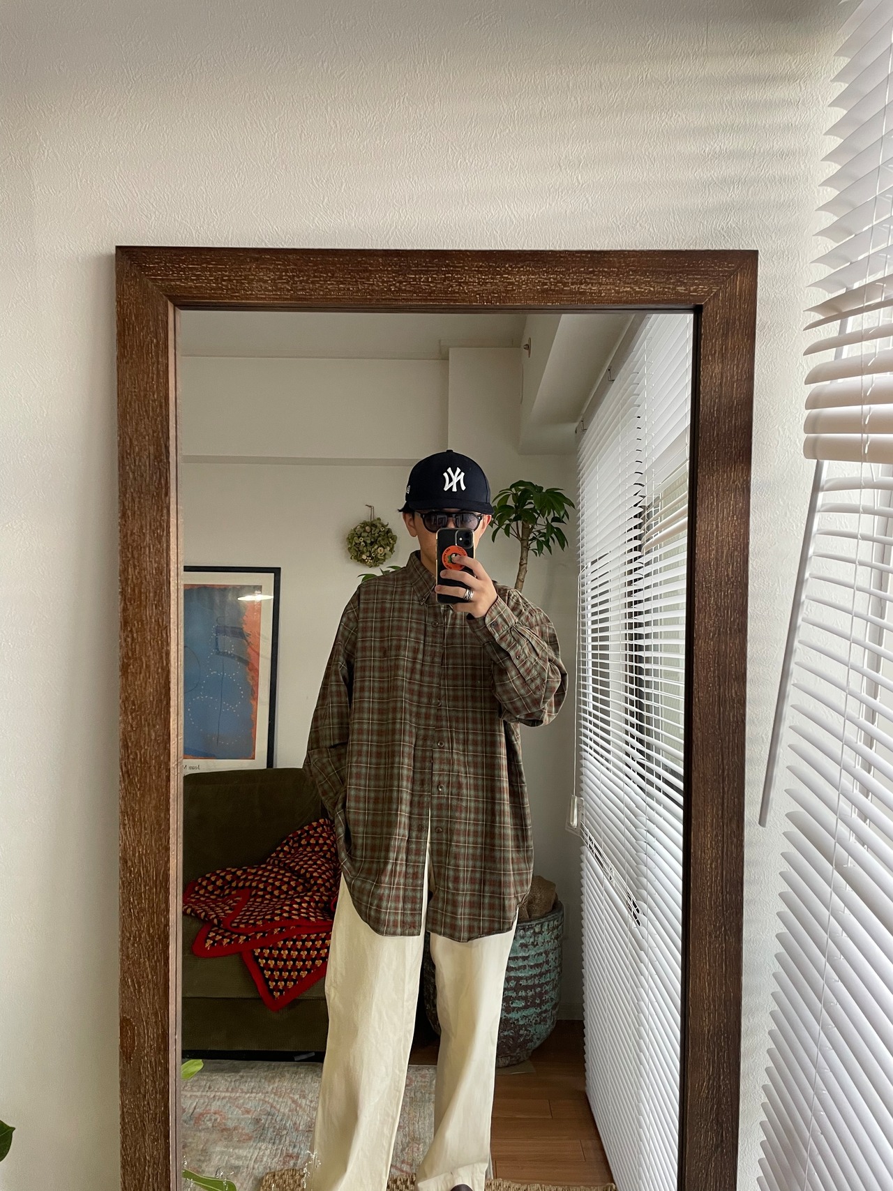 配色の良いチェックシャツ。秋冬カラー。