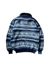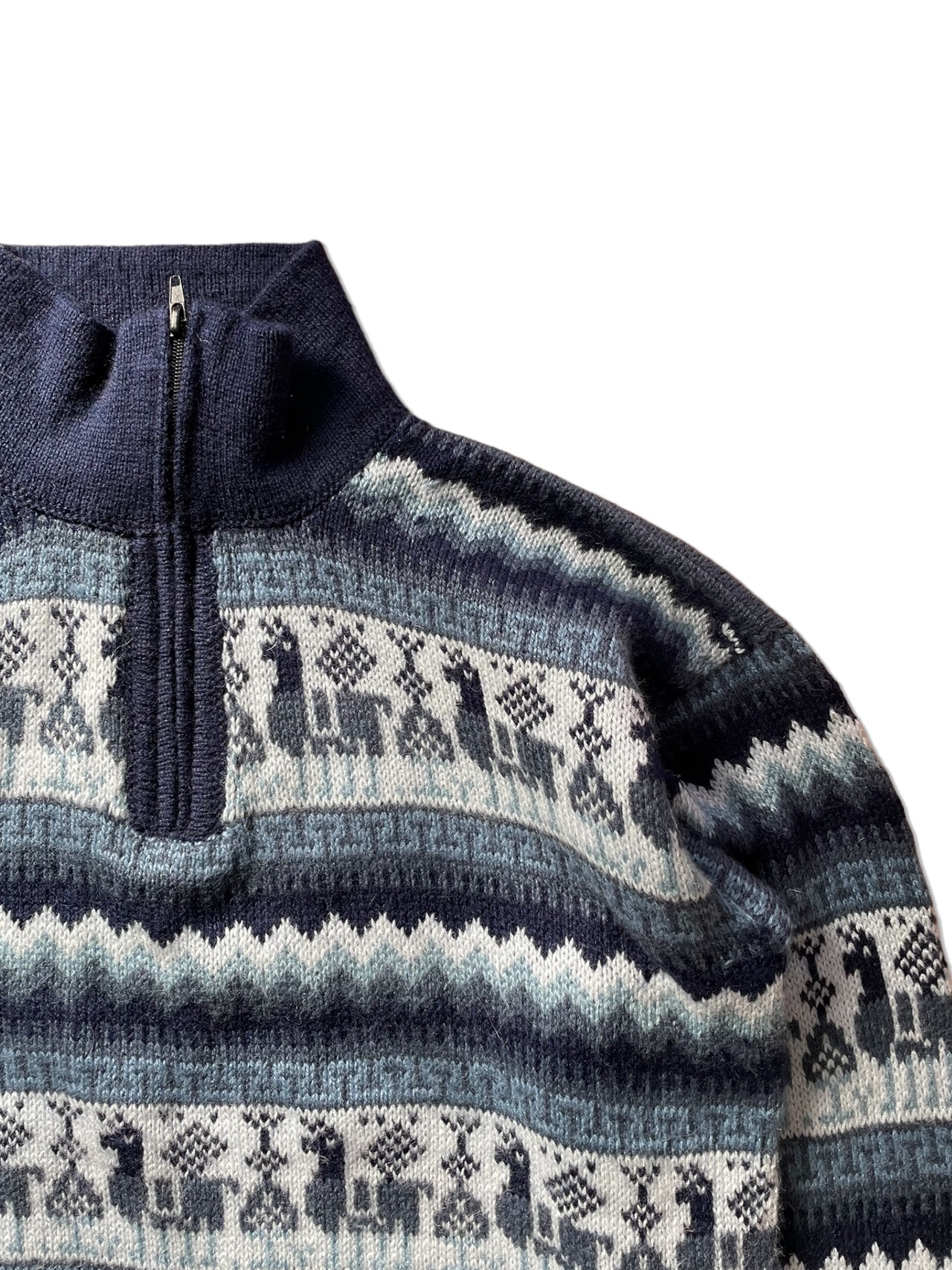 ブルーべースの柄ニット。