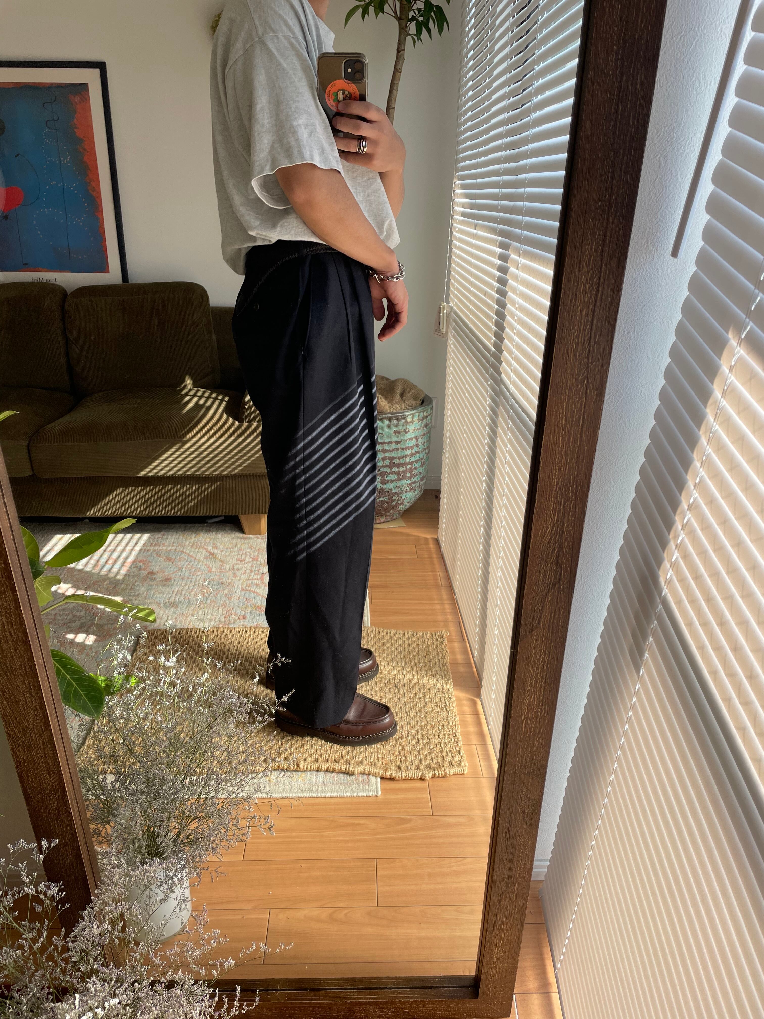 太めの2タックスラックス。レディースラインですが、合わせは左前、zipはykkです。