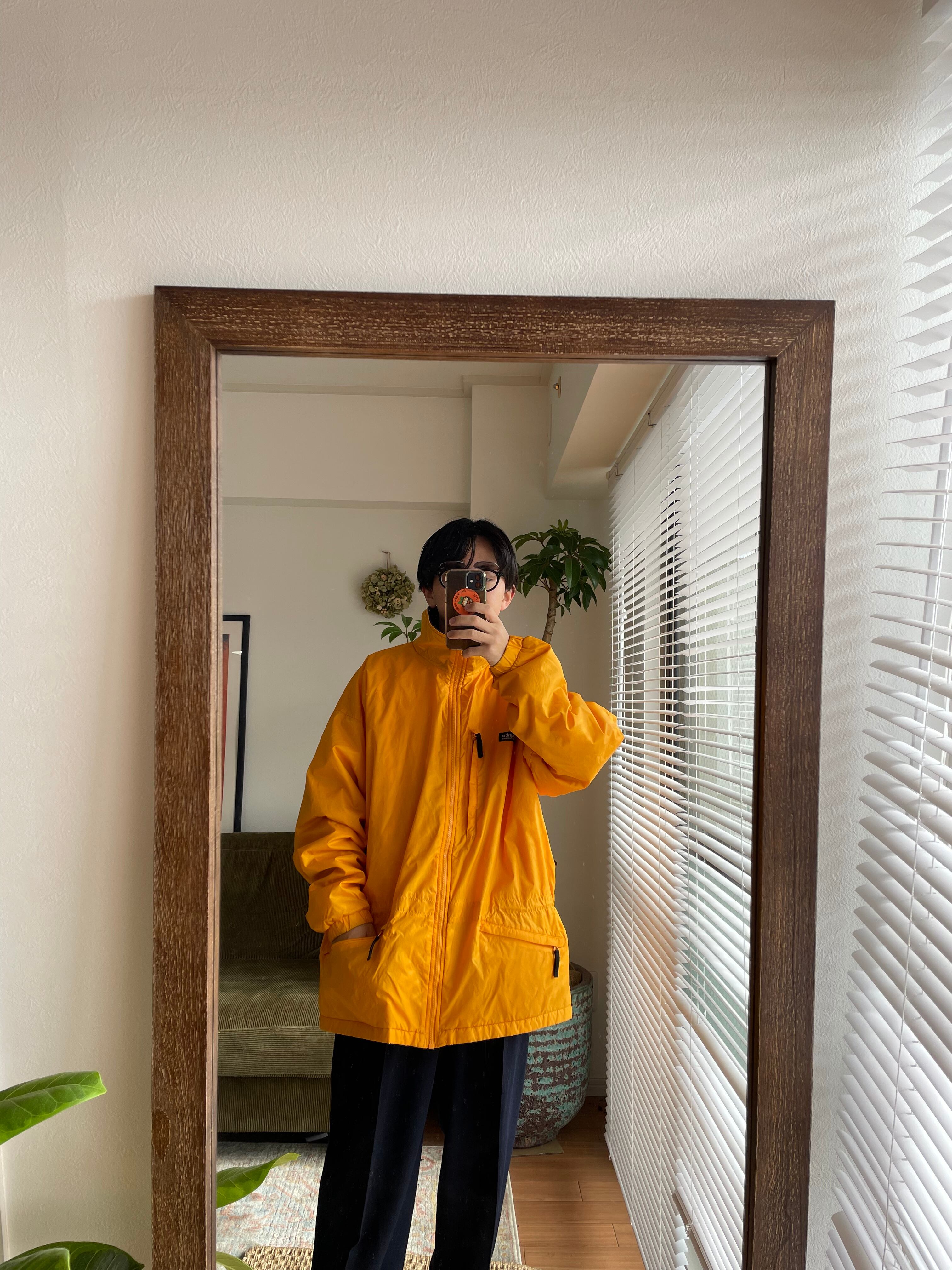 発色の良いイエローカラーのナイロンジャケット。