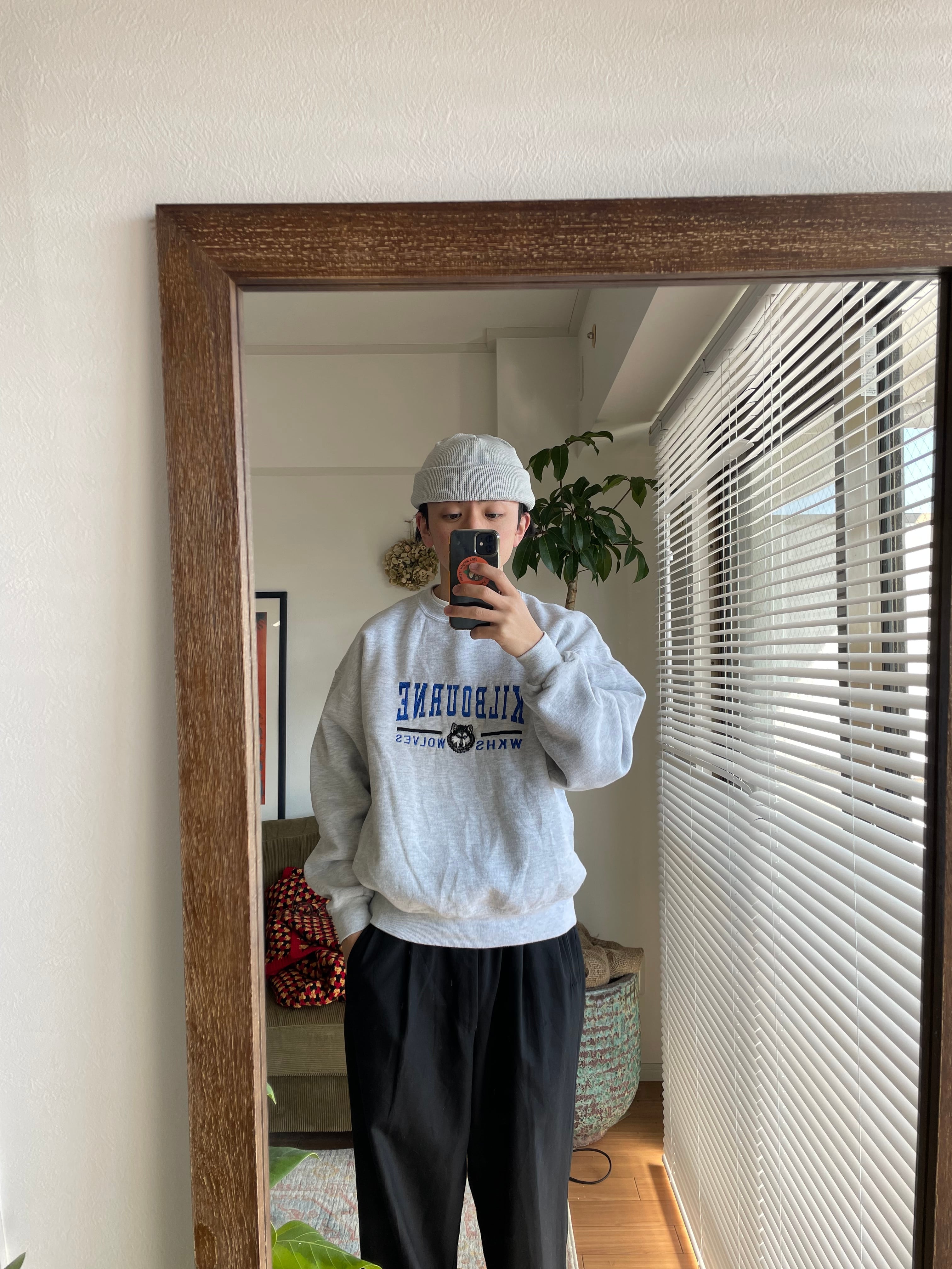 背面の刺繍ロゴにグッドくるロゴスウェット。