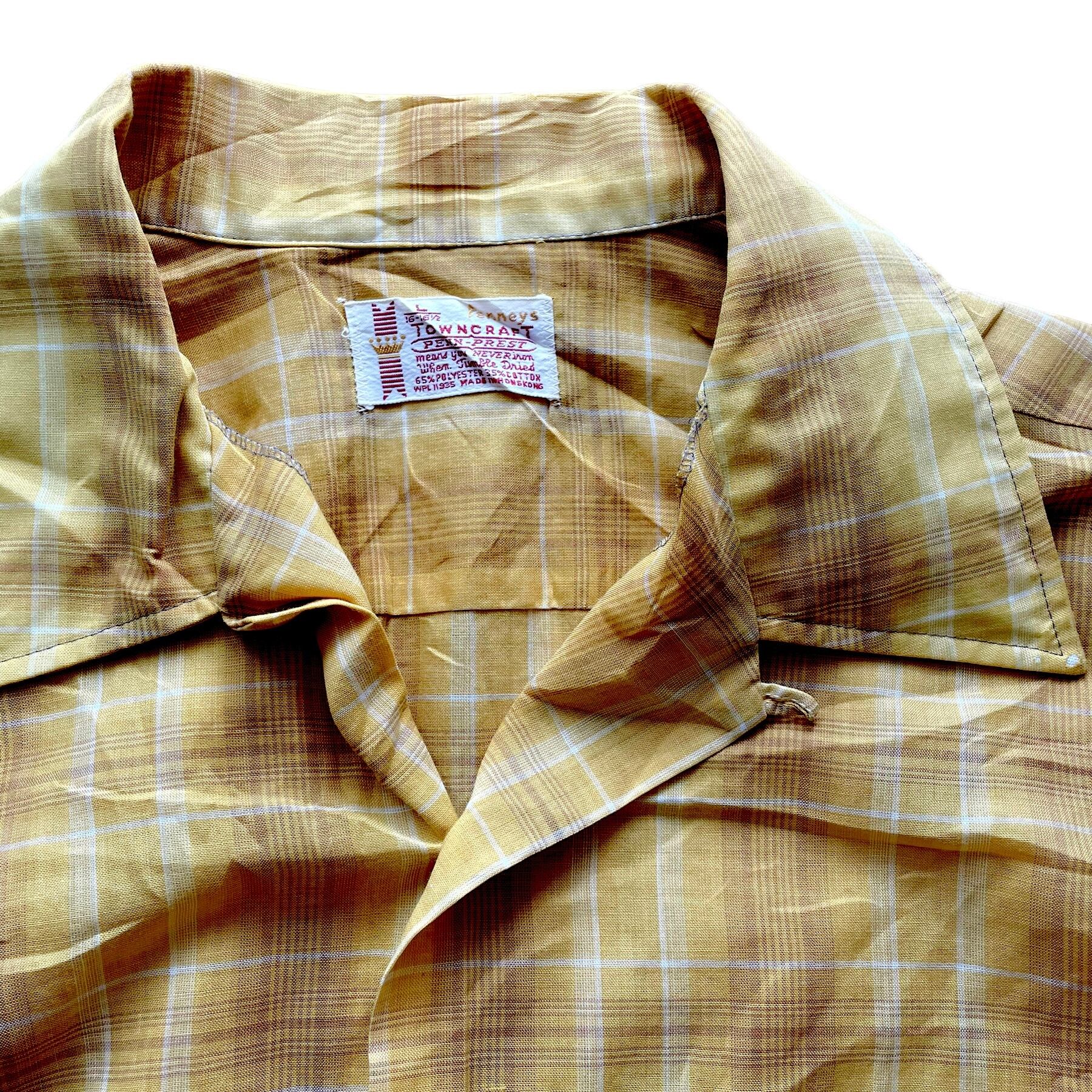 TOWNCRAFT 70s vintage open collar check shirt