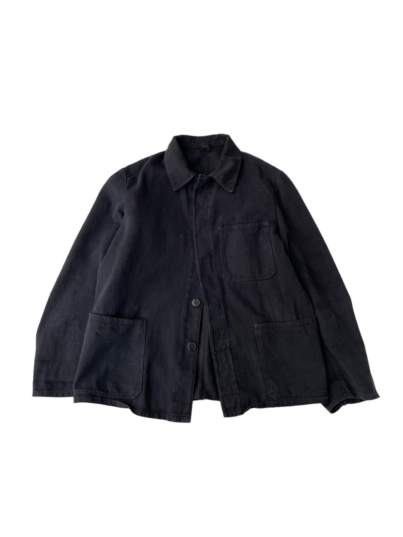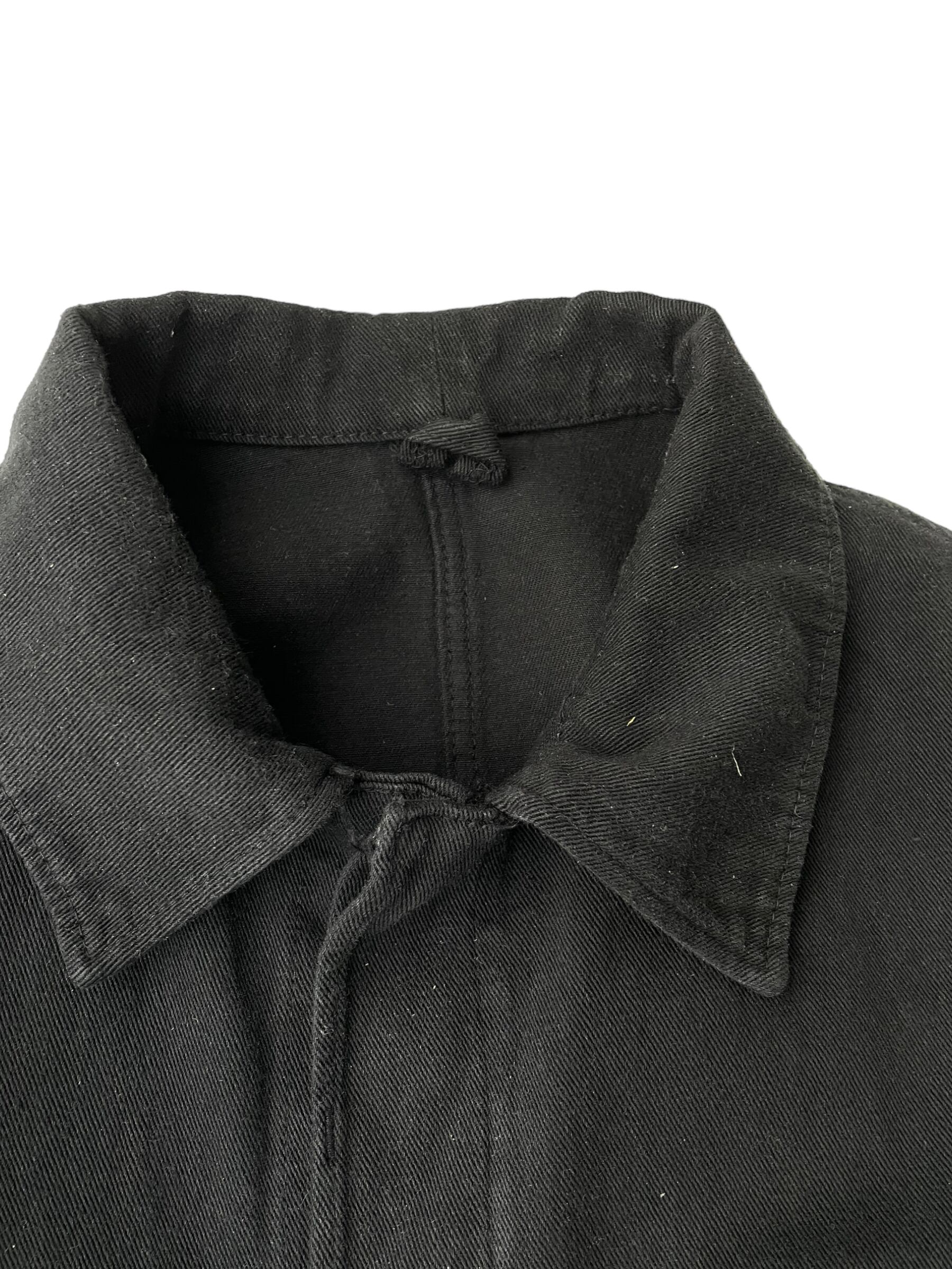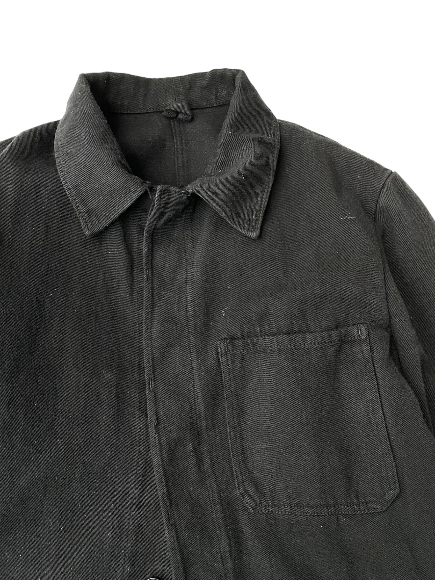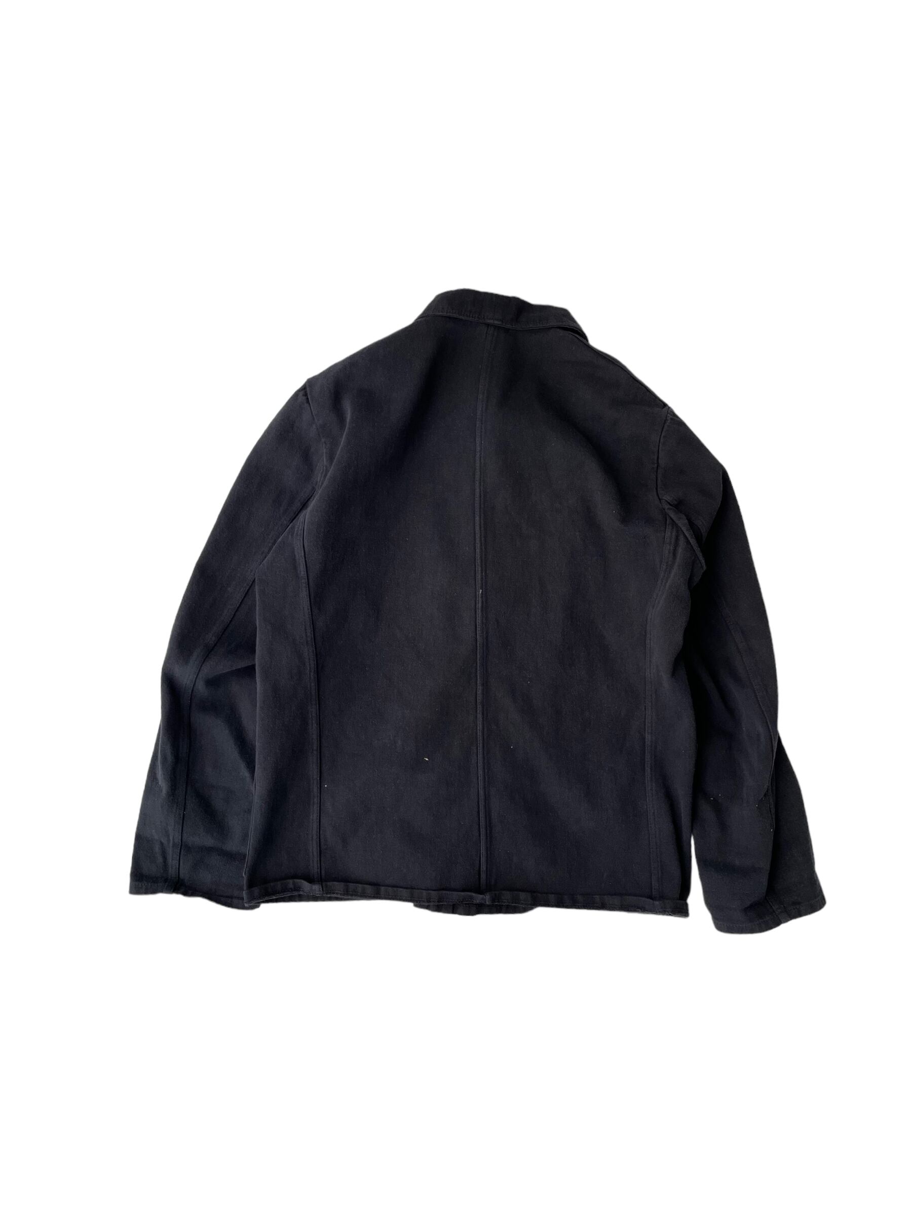 後染めブラックジャケット、比翼ボタン。